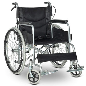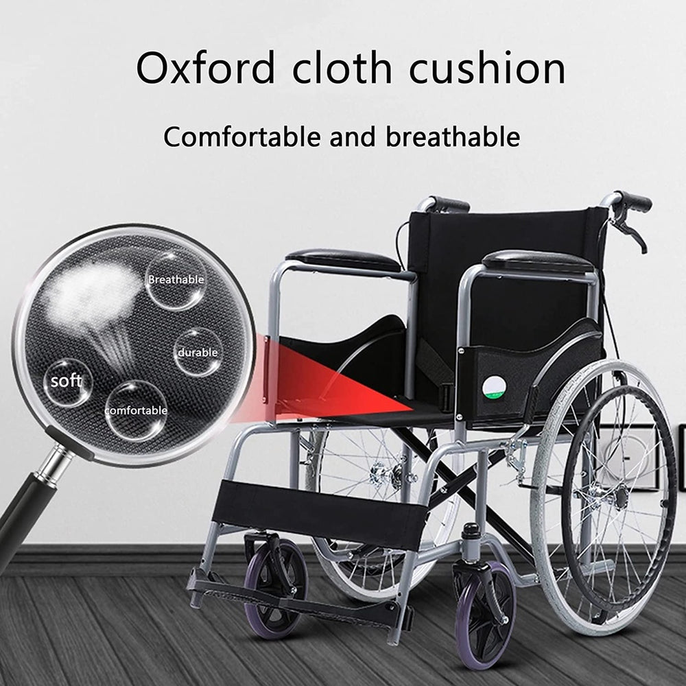 - Durable, foldable patient wheelchair with anti-slip solid rubber tires, lightweight and compact design.